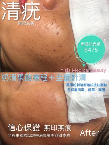 全面脫油脂粒、疣(無限粒數)—>奶油果酸療程+全面針清 新客試做價$475