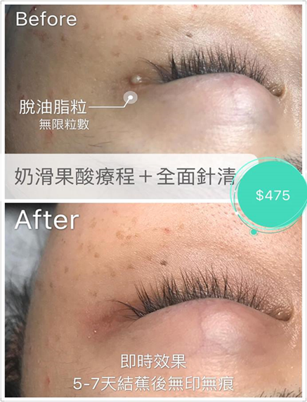 奶滑果酸換膚 (皇牌脫疣、油脂粒療程) |